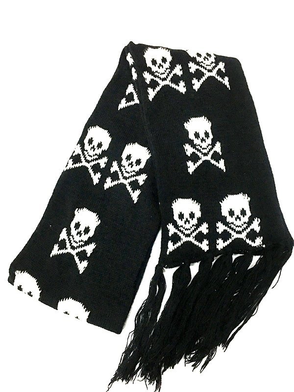 Bufanda de punto con flecos en jacquard de calaveras