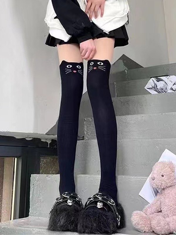 Calcetines hasta el muslo con patrón de dibujos animados