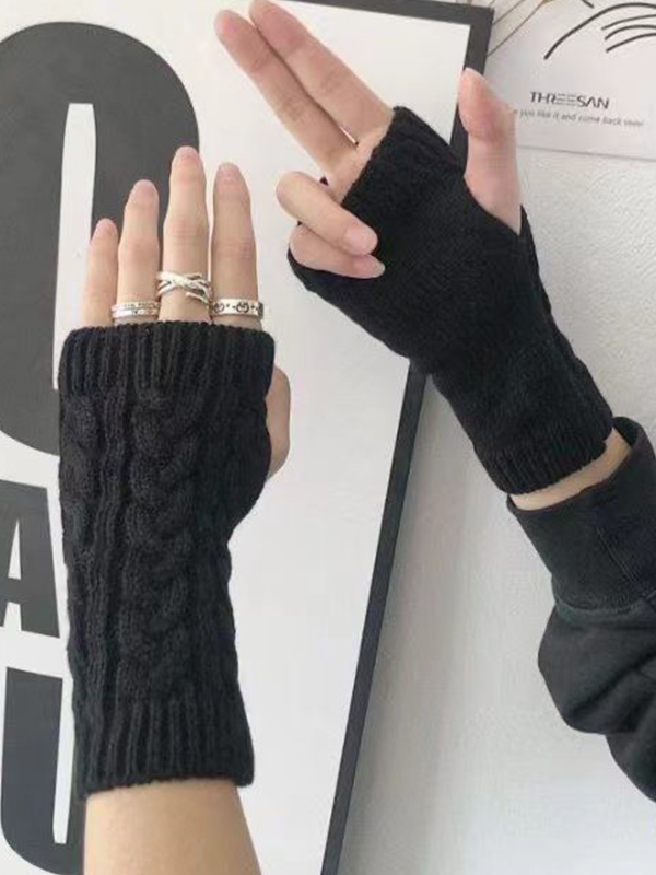 Guantes calentadores de manos de tejido trenzado con orificio para el pulgar