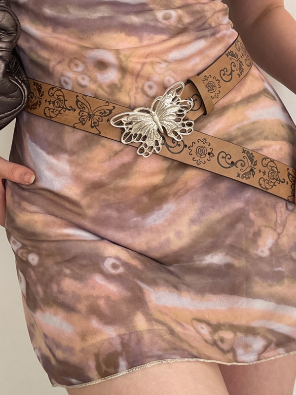 Cinturón vintage con hebilla de mariposa de metal en relieve