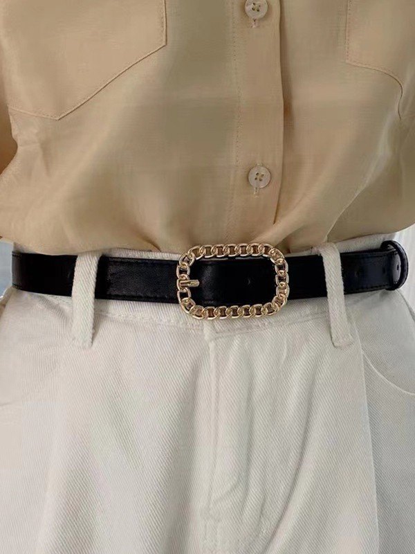 Cinturón de piel sintética con hebilla de cadena vintage