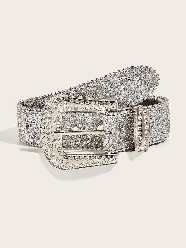 Cinturón con hebilla de lentejuelas adornada con diamantes de imitación