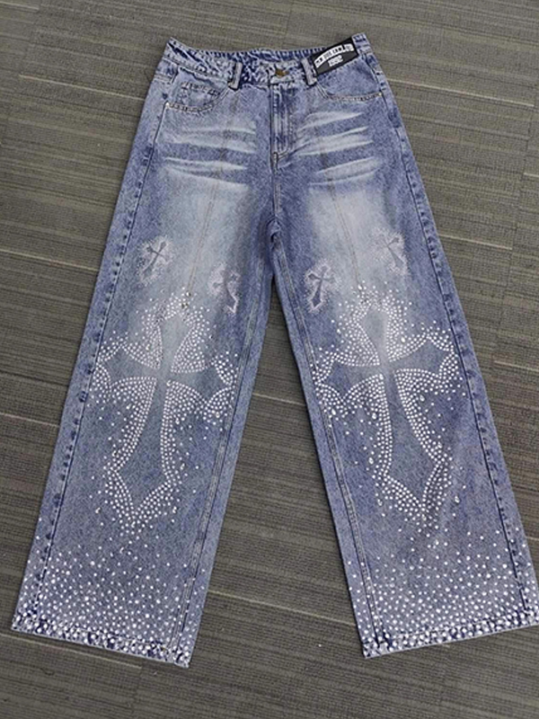 Vaqueros holgados con piernas anchas, color azul, holgado, retro japonés