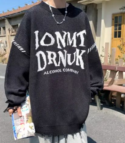 Suéter con dobladillo con borlas y decoración de costuras con estampado de letras para hombre