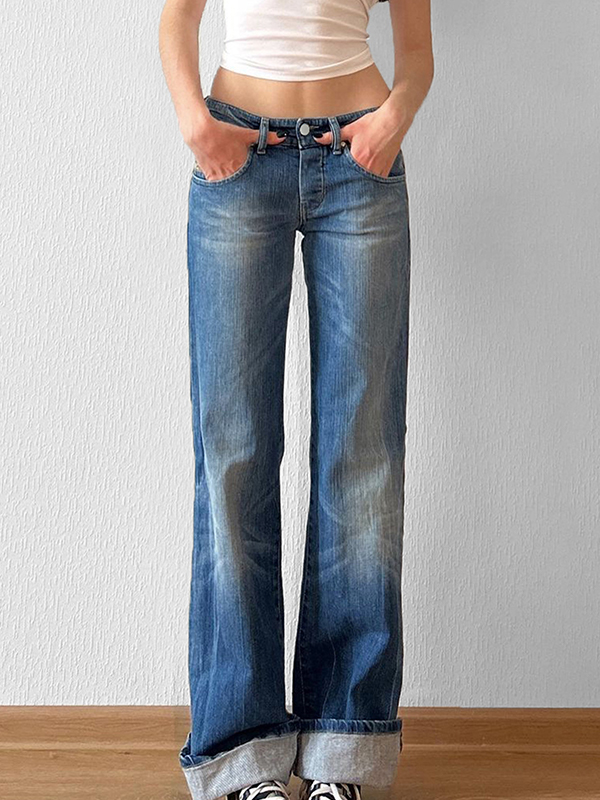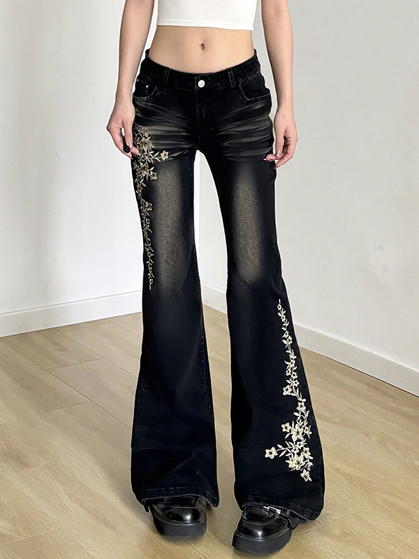 Vaqueros acampanados con bordado de rosas estilo vintage americano