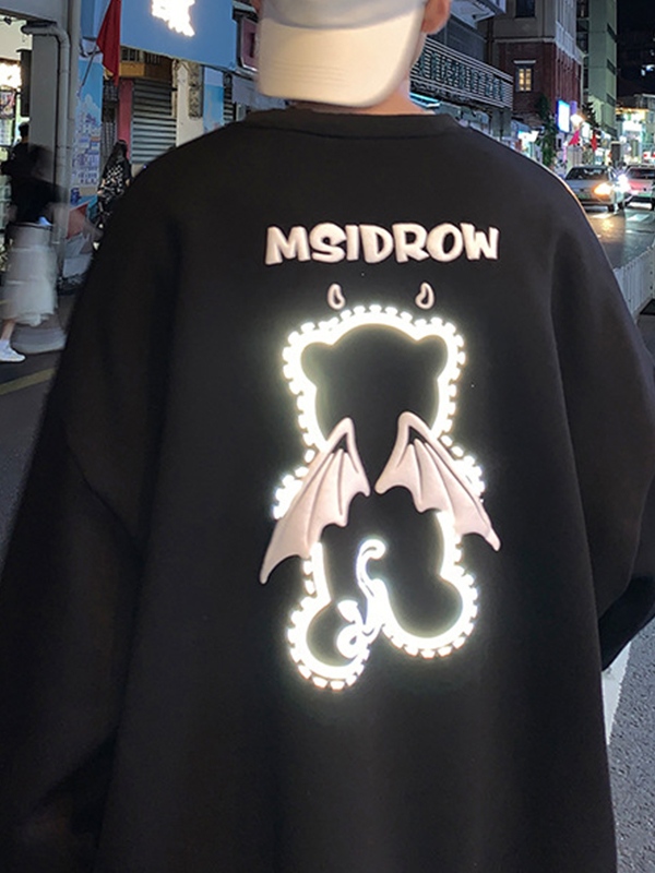 Sudadera de hombre con cuello redondo y estampado de oso reflectante