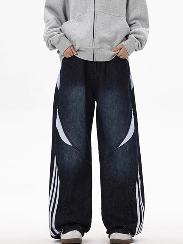 Vaqueros boyfriend con tres rayas y empalmes retro