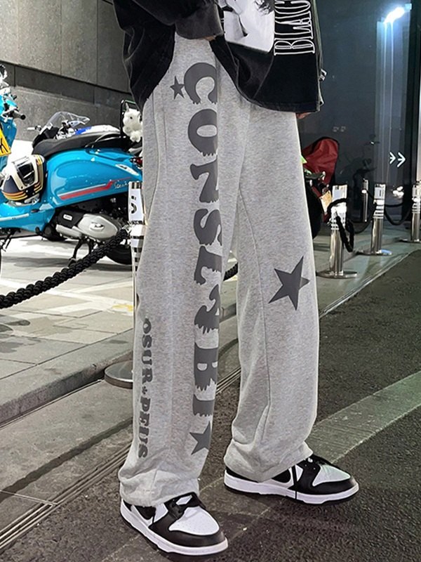 Pantalones de chándal holgados con estampado de letras y estrellas para hombre