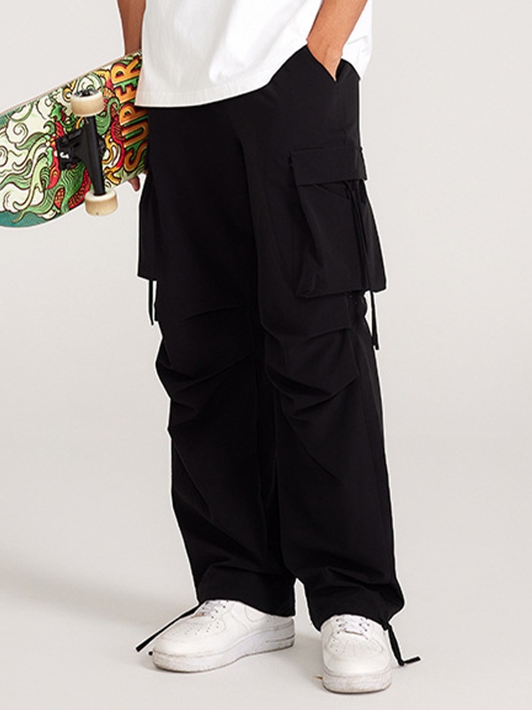 Pantalones de pierna recta con decoración de correa de bolsillo grande para hombre