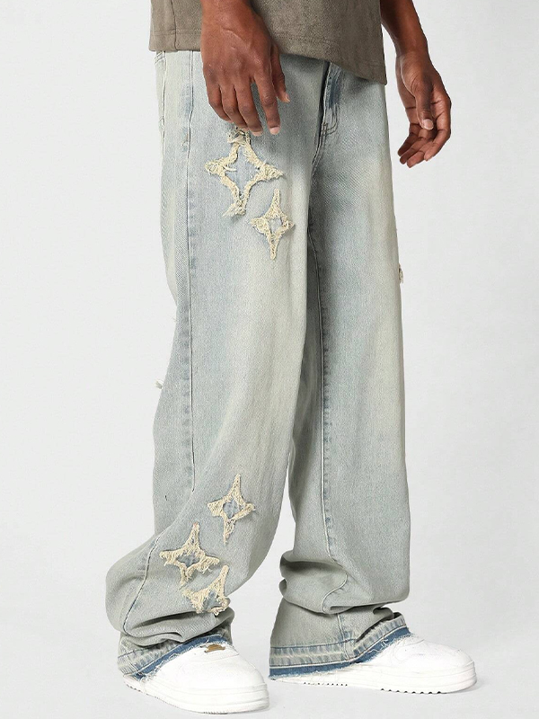 Vaqueros boyfriend con bordado de flores de ciruelo estilo vintage americano