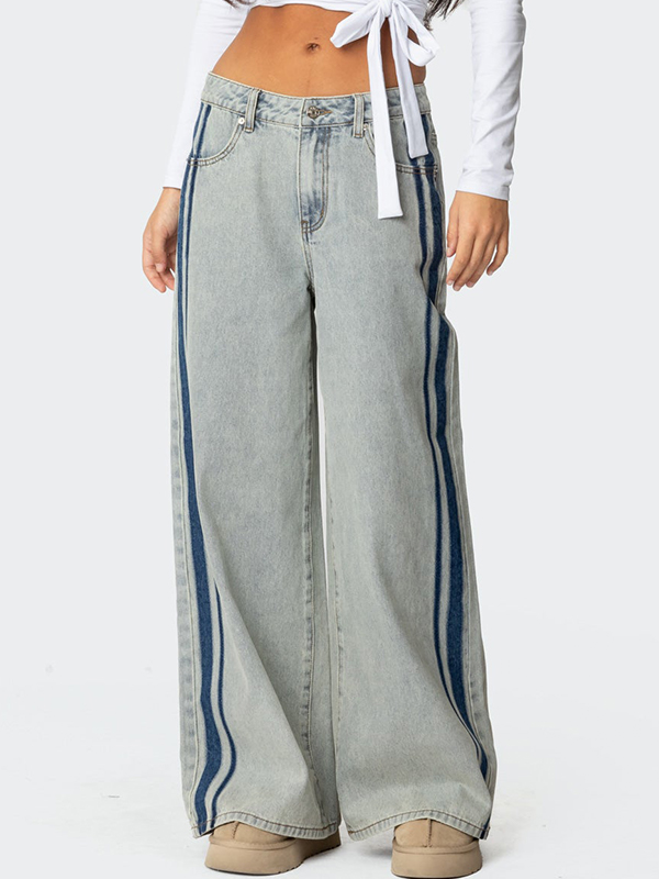 Vaqueros de tiro bajo con lavado y rayas laterales