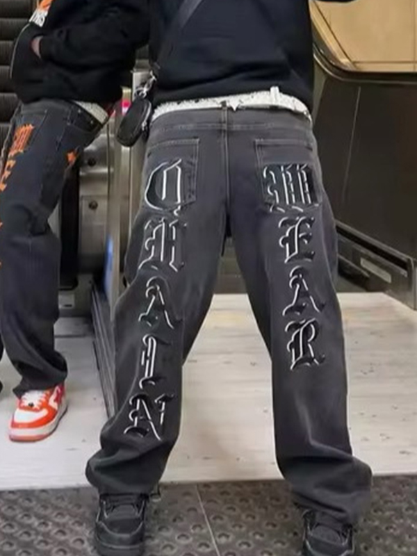 Vaqueros holgados con estampado gráfico de letras de estilo hip hop