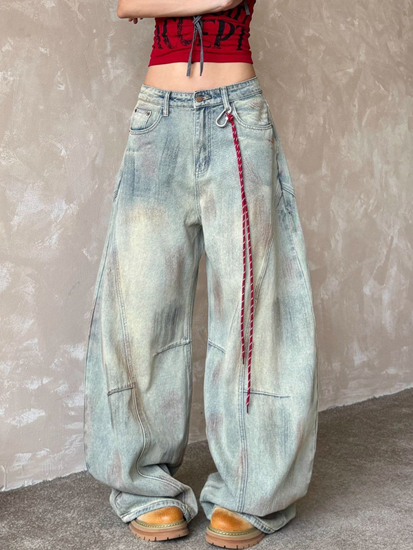 Vaqueros holgados de cimitarra con diseño original y sencillo de color vaca
