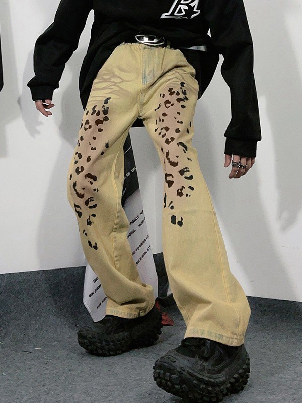 Vaqueros rectos de leopardo con lavado vintage para hombre