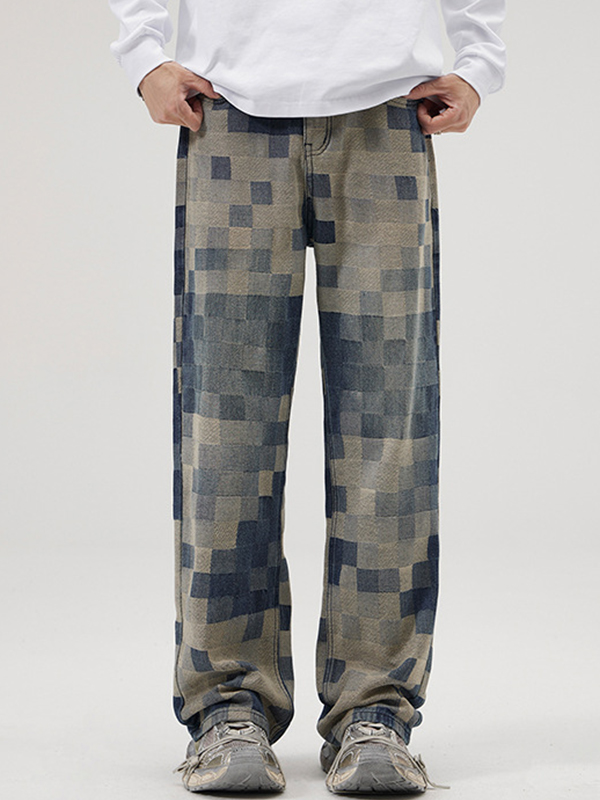 Pantalones vaqueros holgados con cuadrícula de cartas de ajedrez y mosaico