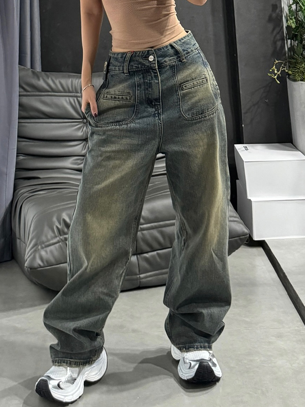 Vaqueros holgados con empalme y lavado vintage para hombre
