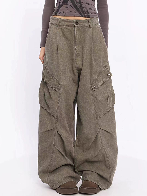 Vaqueros holgados con piernas anchas, color azul, holgado, retro japonés