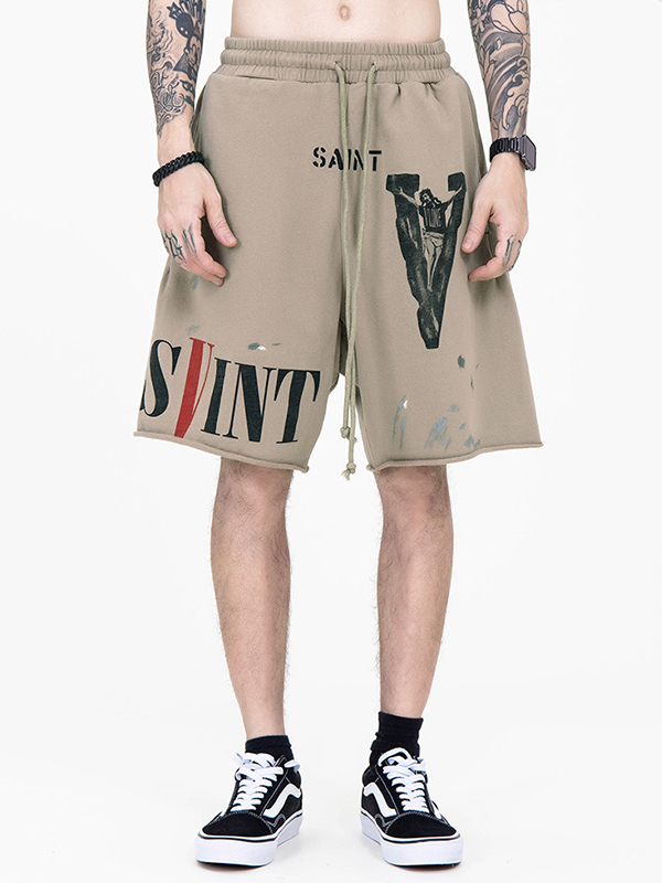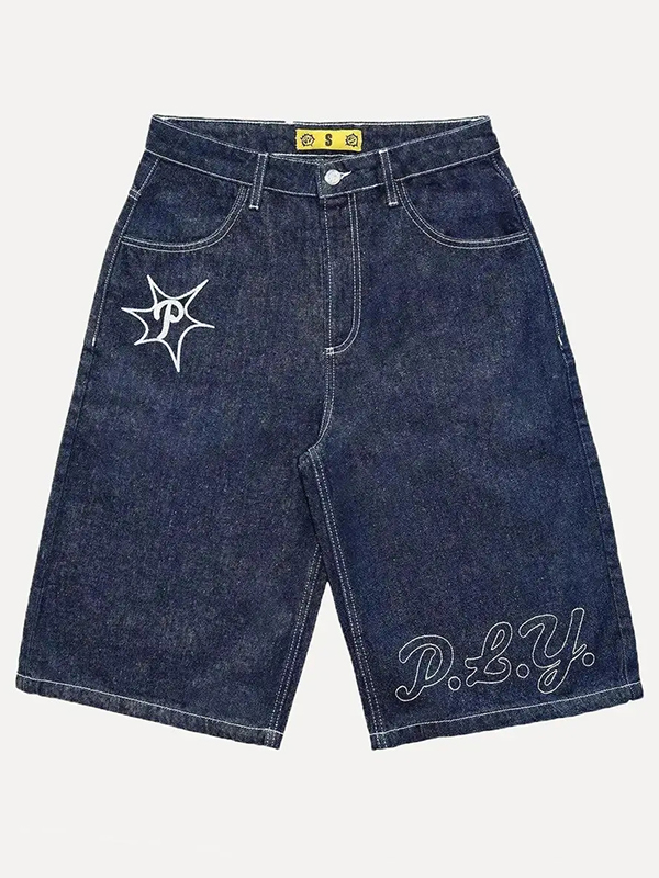 Shorts vaqueros con letras de calle para hombre