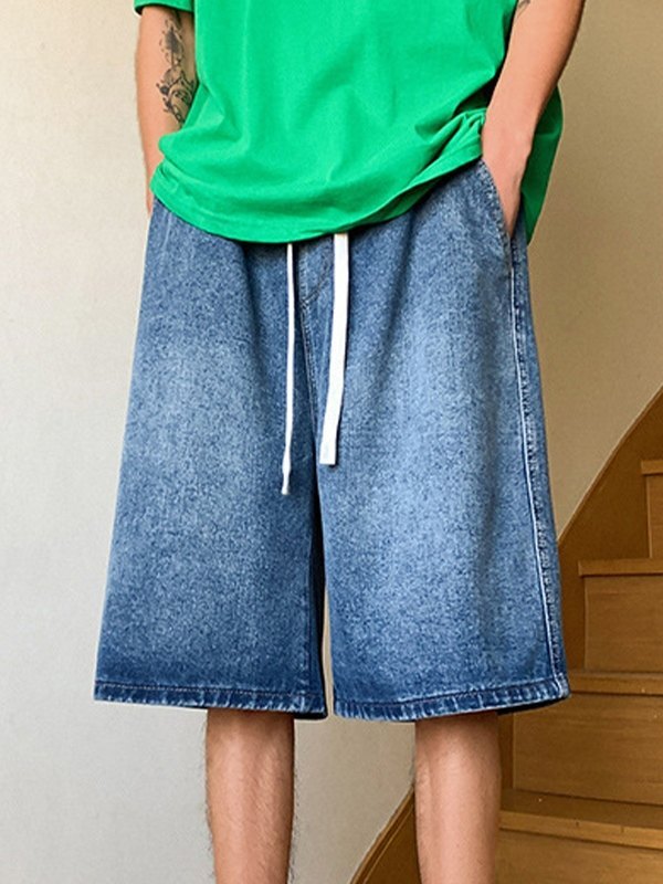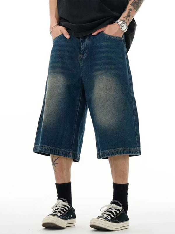 Pantalones cortos sueltos de mezclilla lavada vintage para hombre
