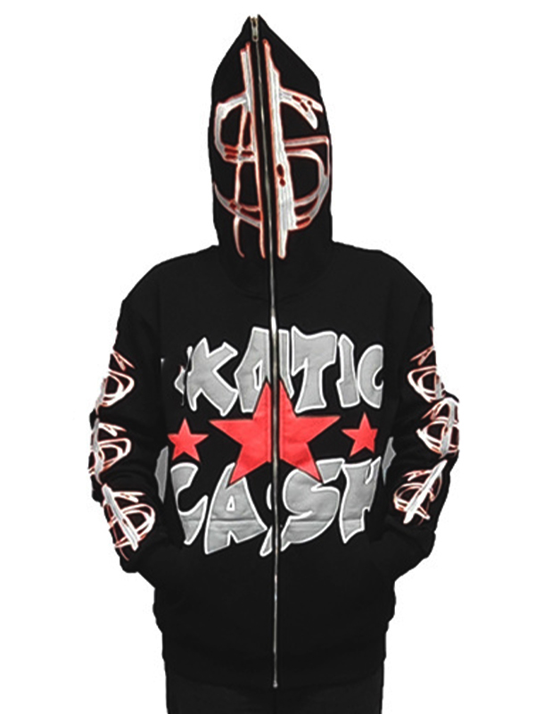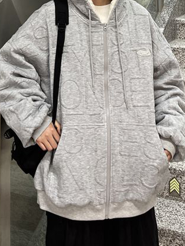 Sudadera con capucha extragrande con cremallera completa y estampado de letras Hip Pop para hombre
