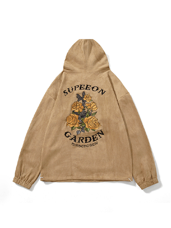 Sudadera extragrande con capucha y bordado de letras florales para hombre