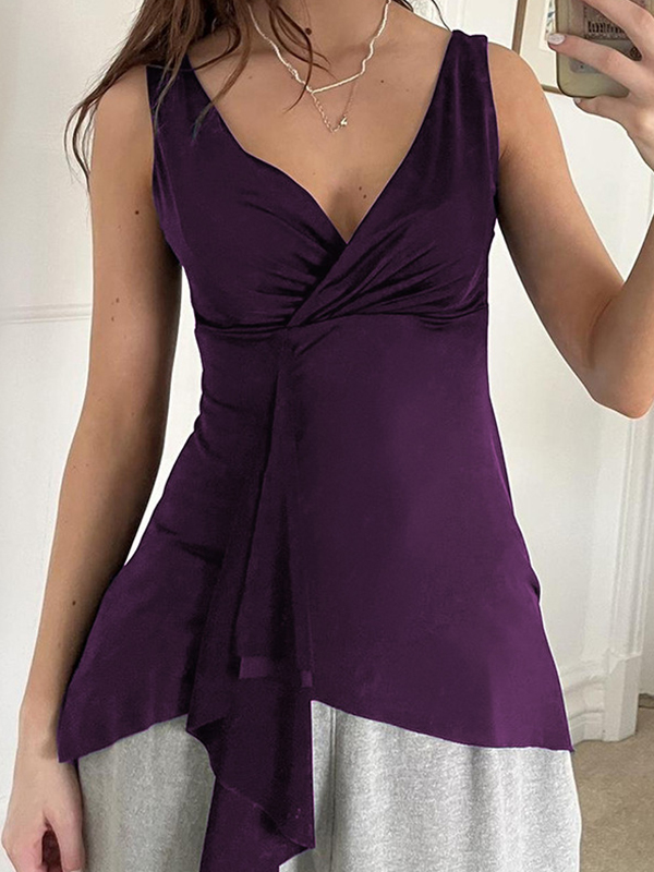 Top de tirantes con cuello en V y volantes