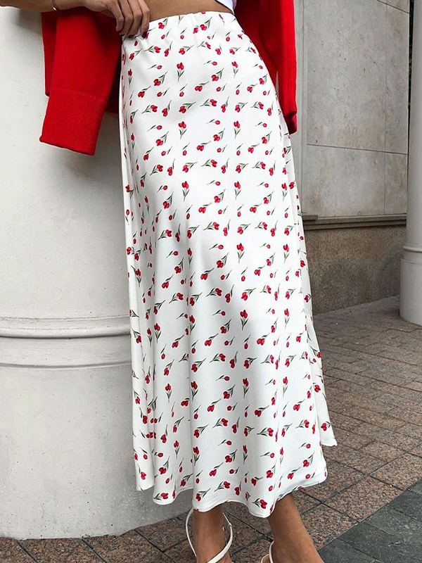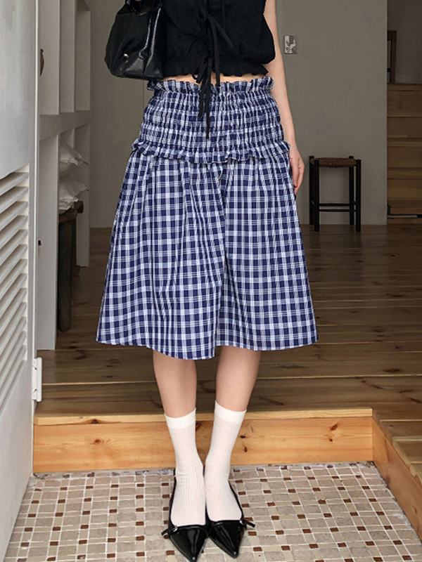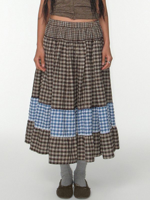 Falda larga con estampado de cuadros retro y patchwork en contraste de colores