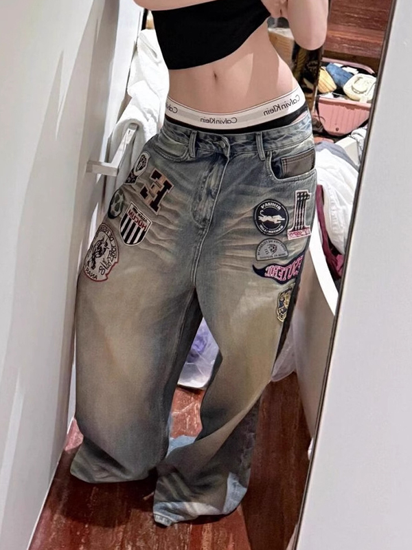 Vaqueros boyfriend con parches divertidos y diseño orientado