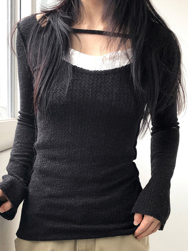 Camiseta de manga larga con diseño de patchwork y estampado vintage para hombre