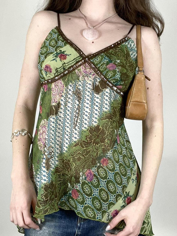 Top de tirantes con estampado floral vintage Y2K