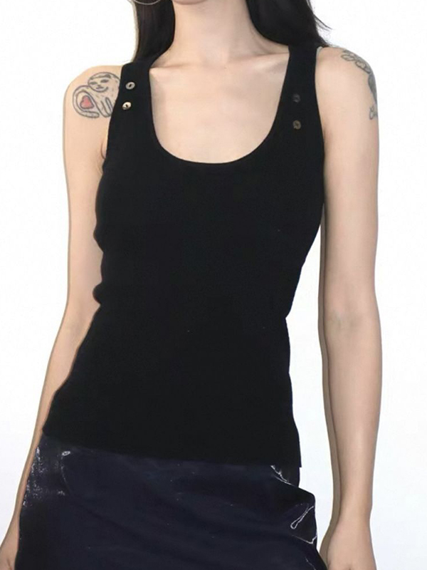 Camiseta sin mangas con botones y tachuelas