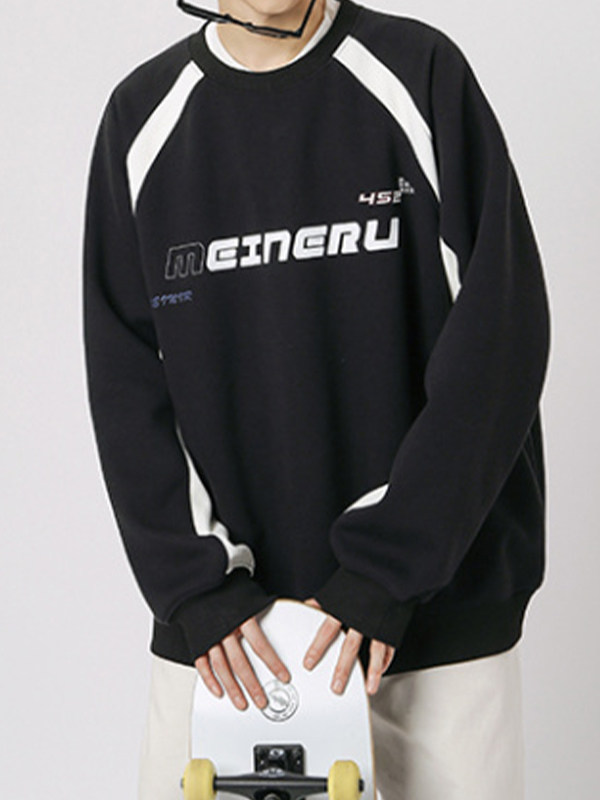 Camiseta de manga larga con diseño de patchwork y estampado vintage para hombre