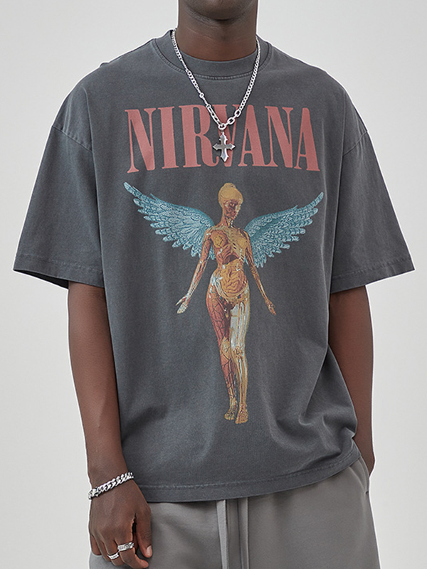 Camiseta extragrande de manga corta con estampado de alas para hombre