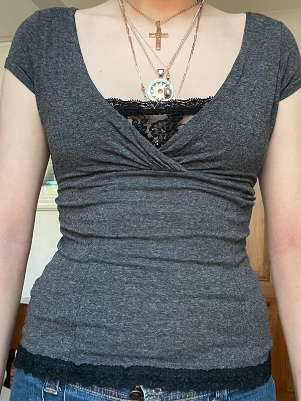 Camiseta de manga corta con bordado de rayas en contraste para hombre