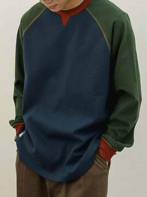 Camiseta de manga larga de color de contraste vintage para hombre