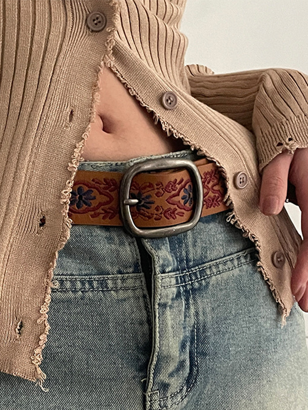 Cinturón con hebilla y bordado floral vintage