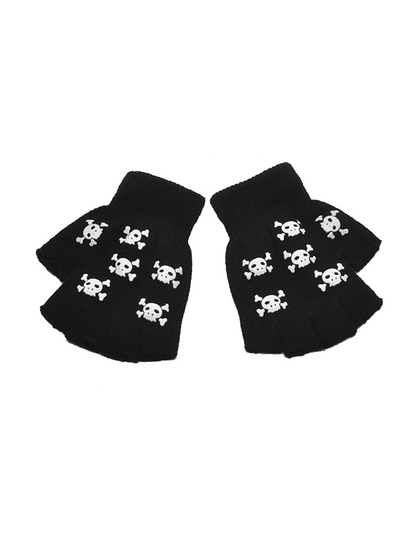 Guantes sin dedos con orificio para el pulgar con bordado de calavera