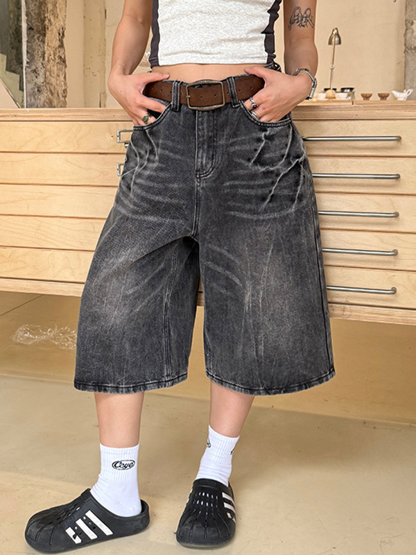 Pantalones cortos vaqueros holgados estilo vintage americano