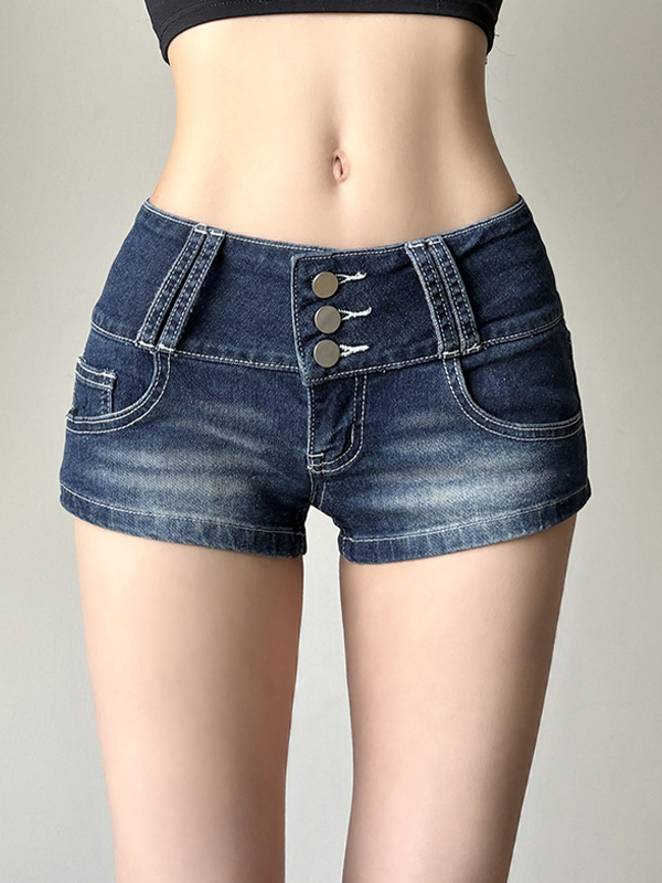 Pantalones cortos de mezclilla de tres botones estilo vintage americano