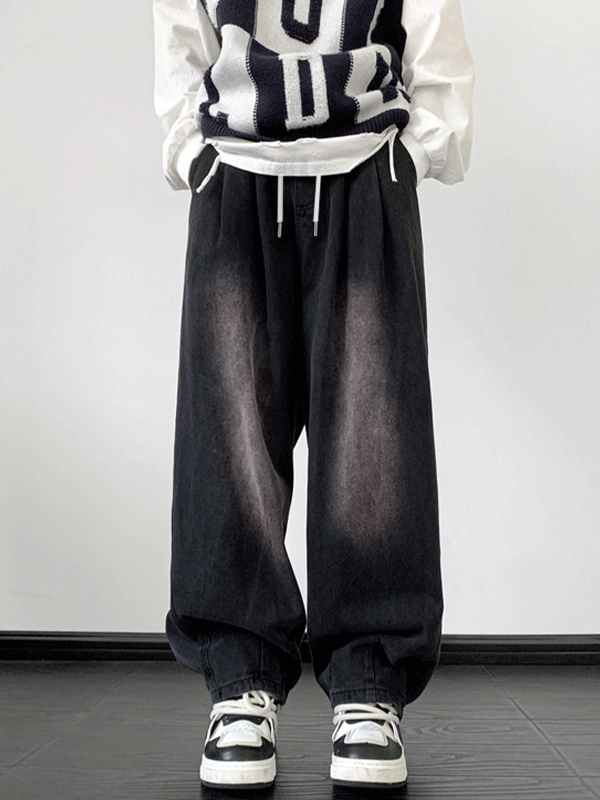 Vaqueros holgados con cordón y lavado vintage para hombre