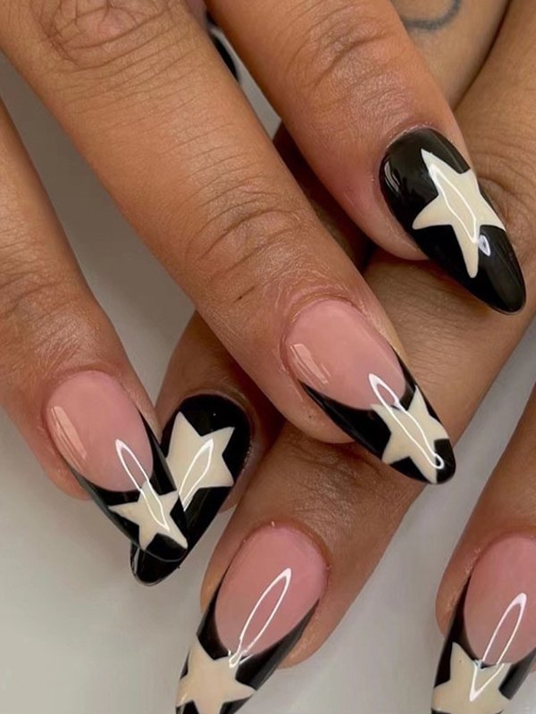 24 piezas de patrón de estrella de luna creciente prensa en las uñas