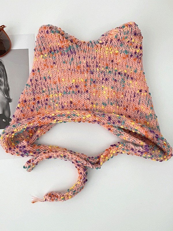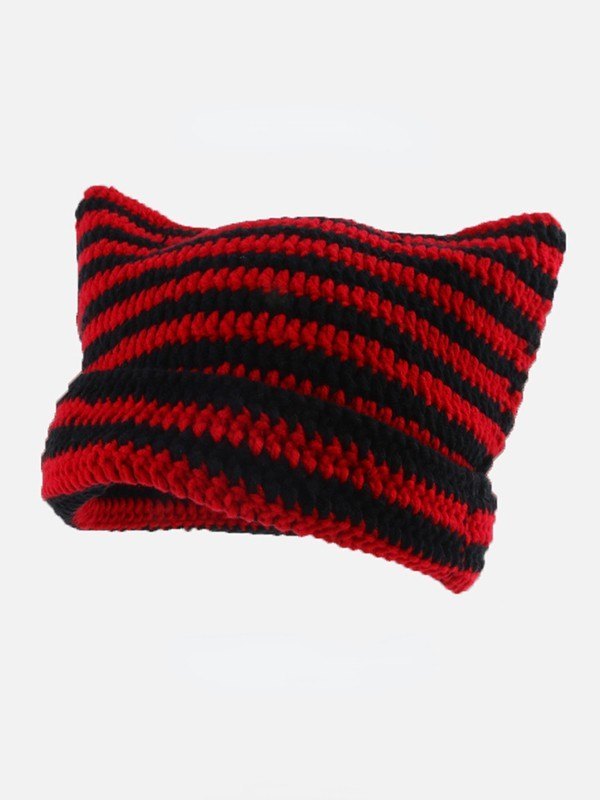 Gorro Beanie con diseño de orejas a rayas en contraste