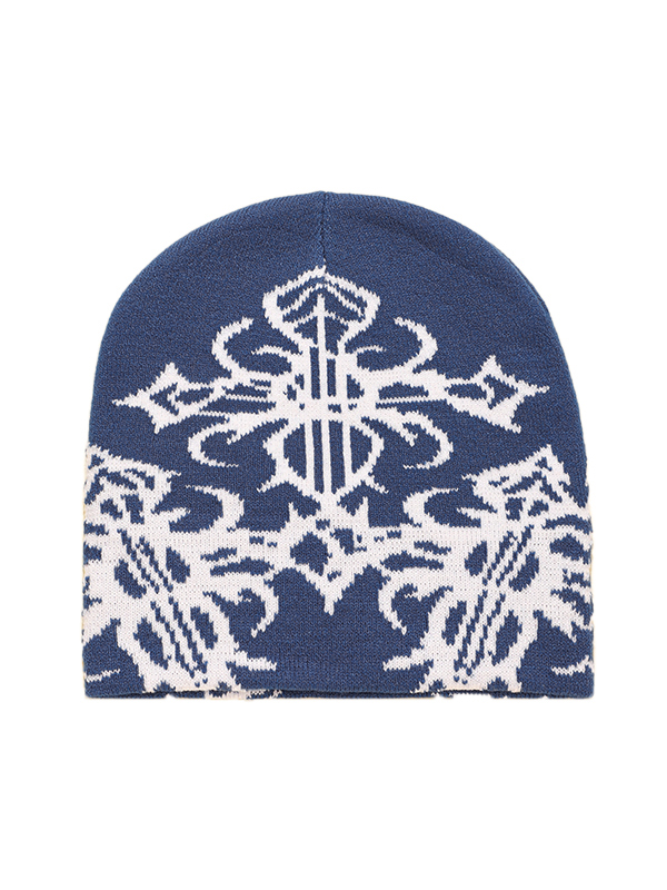 Gorro Beanie de jacquard con mariposas en contraste de color