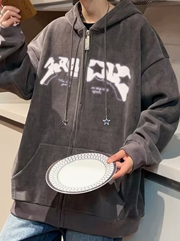 Sudadera con capucha extragrande con estampado de estrellas flocadas para hombre