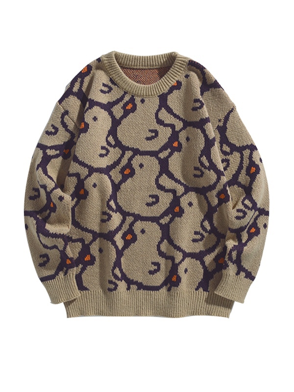 Suéter de punto con cuello redondo y jacquard de pato para hombre