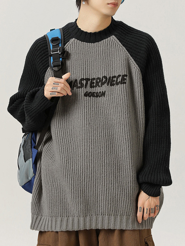 Suéter con mangas raglán y diseño de patchwork en contraste
