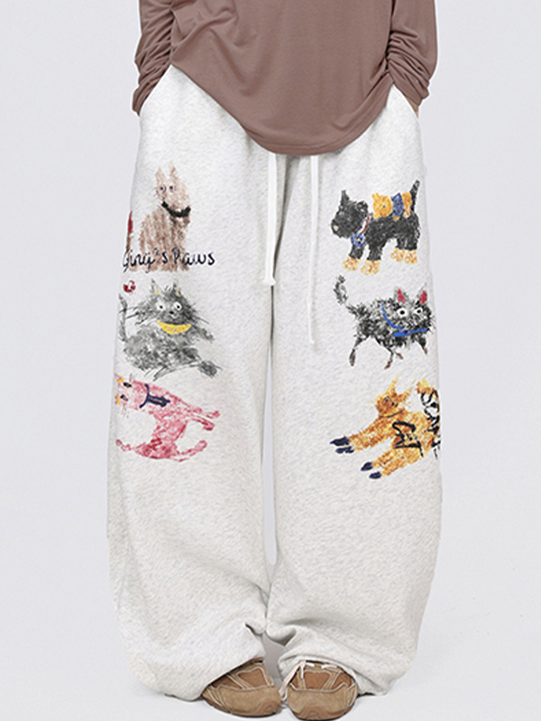 Pantalones de chándal holgados con estampado de letras y estrellas para hombre