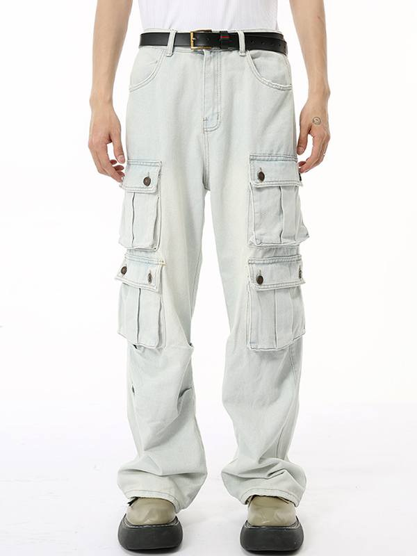 Vaqueros cargo lavados con múltiples bolsillos para hombre
