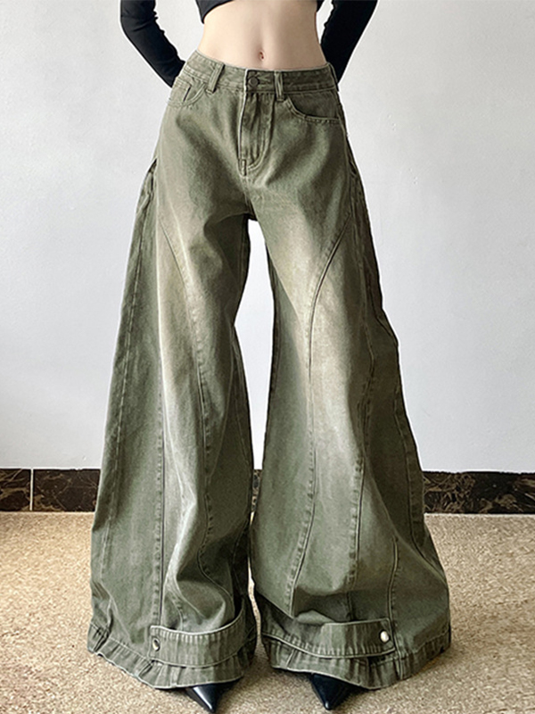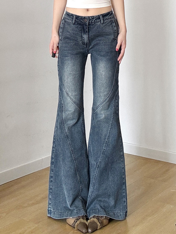 Vaqueros acampanados con dobladillo lavado y diseño de moda