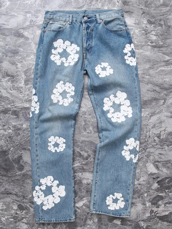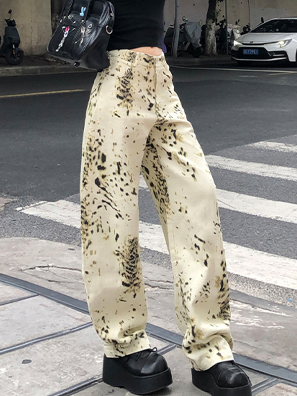 Vaqueros boyfriend con estampado de leopardo y copos de nieve y manchas de moho